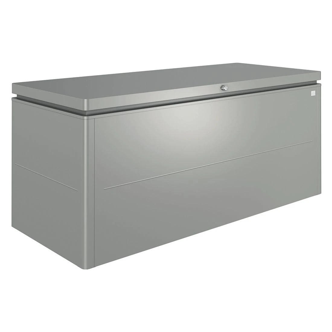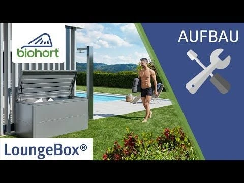 Gefertigt ist die Gartenbox aus langlebigem Stahlblech. Dieses Material zeichnet sich durch eine sehr gute Beständigkeit gegenüber äußeren Einflüssen aus. Der Korpus ist farblich in geschmackvollem Quarzgrau-Metallic gestaltet. Gerade wenn es darum geht, die Gartenbox optimal zu integrieren, ist diese Farbe ideal dafür. Als großer Vorteil der Gartenbox erweist sich die Soft-Close-Dämpfung. Sie ermöglicht ein sicheres und geräuscharmes Schließen des Deckels.