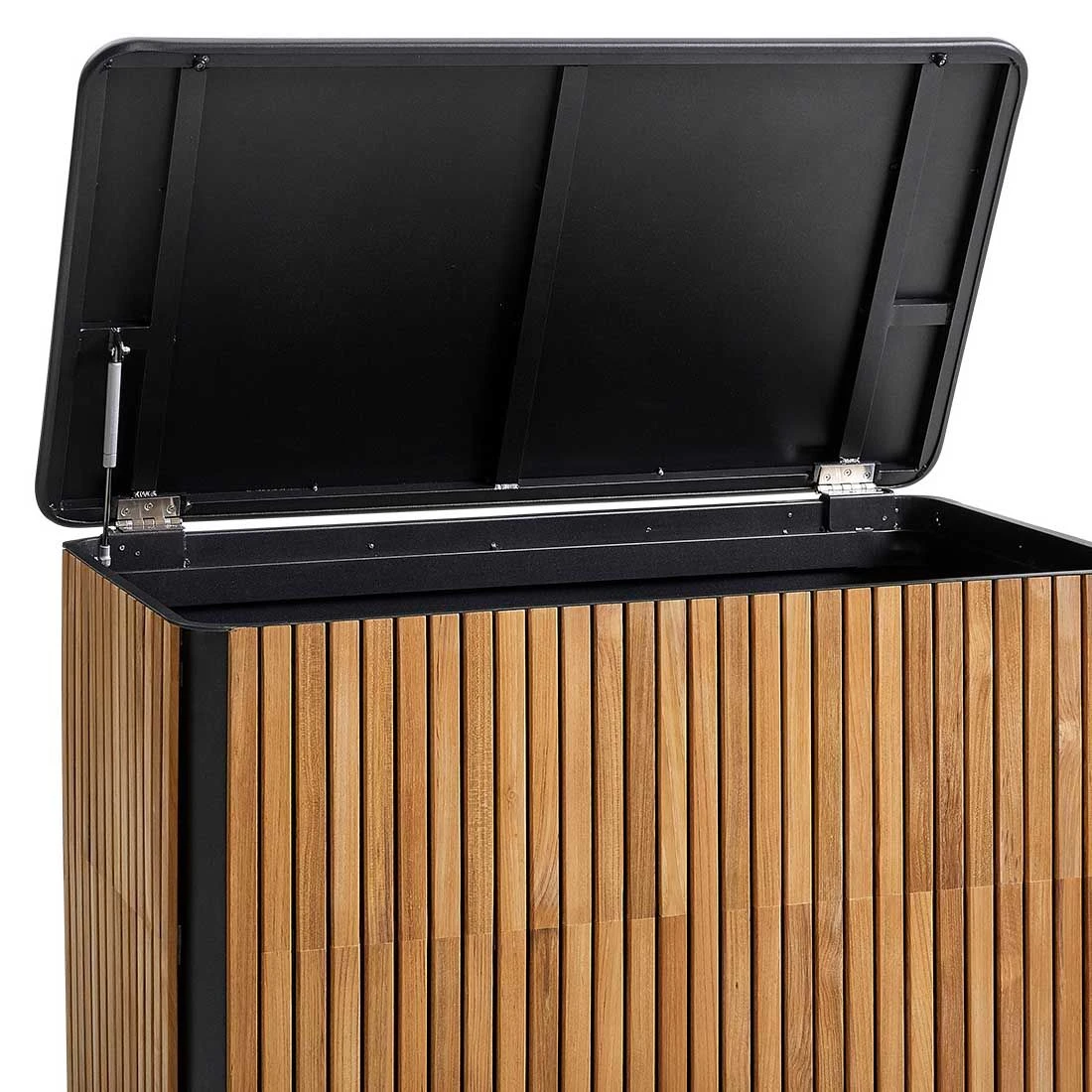 Der Korpus wird aus Teakholz gefertigt und bringt dadurch ein natürliches Flair auf Ihre Terrasse. Farblich ist die Gartenbox von Cane-Line in ansprechendem Natur gehalten. Ideal, um in verschiedene Gestaltungskonzepte integriert werden zu können.