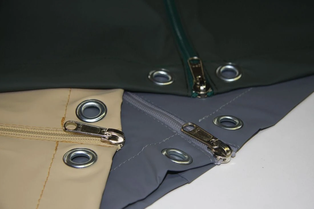 Diese atmungsaktiven Hauben sind auch, wo sie nicht mit Gummizug vor Windeinfluss bewahrt werden können, mit Metallösen versehen (Lieferumfang ohne Befestigungsschnur). Das Befestigen der Schutzhauben am Möbelstück ist somit ohne weiteres möglich. Reißverschlüsse gibt es da, wo es für die Funktion und Verwendung sinnvoll ist.