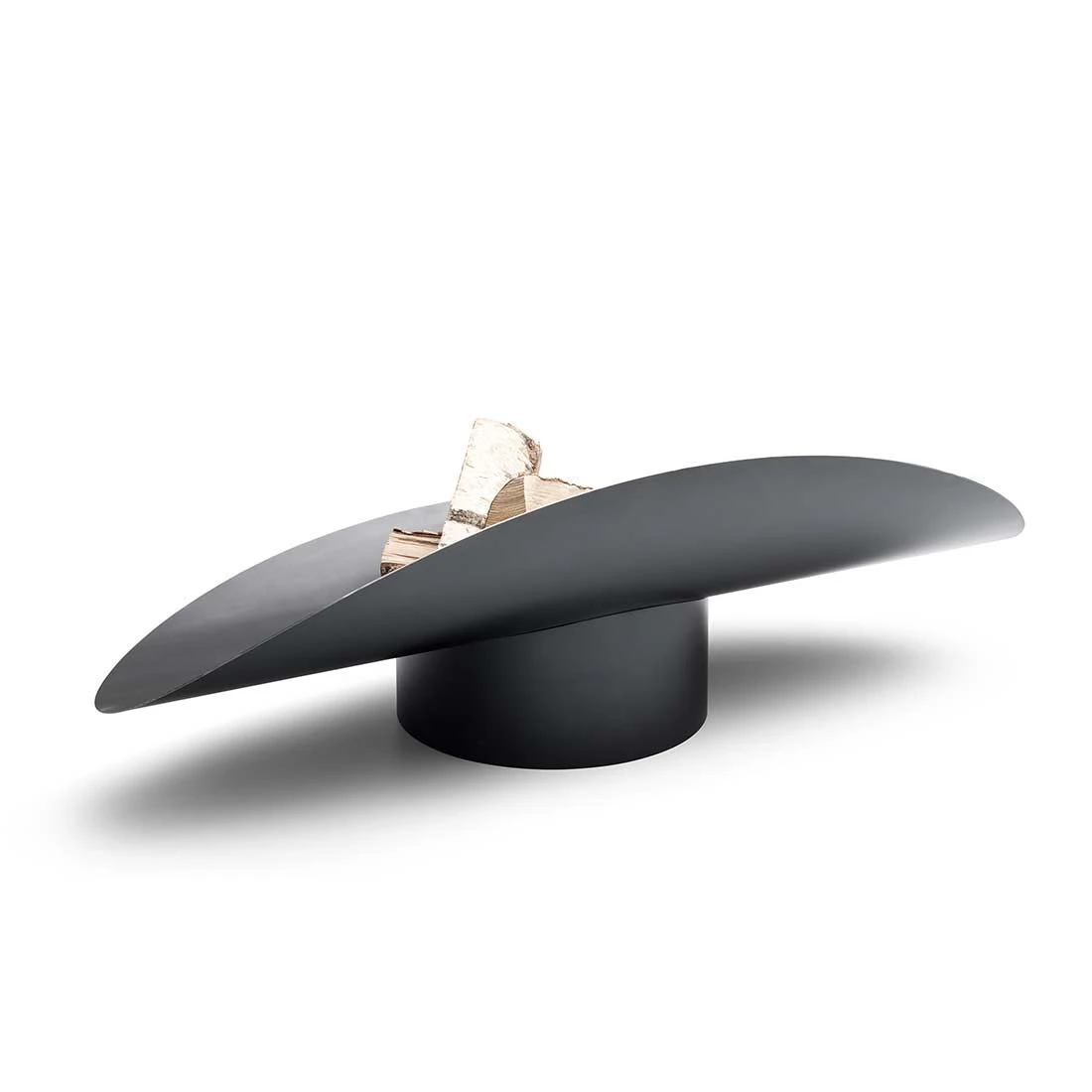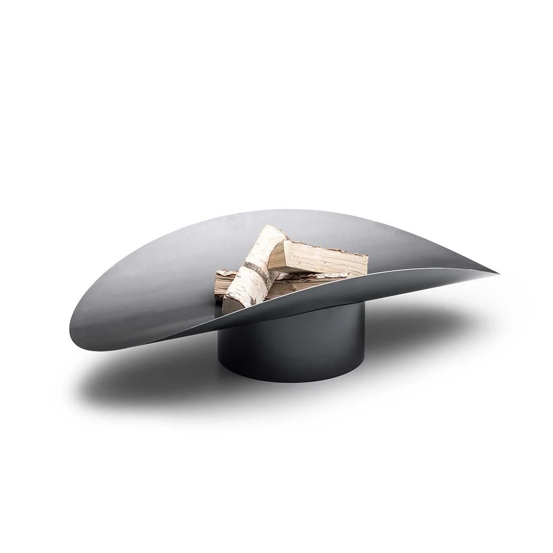 Eine skulpturale Feuerschale aus Corten- Stahl, die mit ungeahnter Funktionalität überrascht. Steht sie im Mittelpunkt des Geschehens kann sie eine neutrale Stellung einnehmen, sich jedoch genauso einer Sitzgruppe zuwenden, bzw. die Flammen vor zu viel Wind abschirmen. Der Fuß sorgt dabei für Standsicherheit und bildet die Lagerung für die gerundete Schale. Er ist zugleich auch Ascheschale: Ist das Feuer weitestgehend abgebrannt und soll vollends beendet werden, so kann die Schale, mit Handschuhen, gegriffen und durch einseitiges Anheben in den Fuß entleert werden. Dieser wird anschließend mit der leeren Brennschale in Überkopfstellung verschlossen, wodurch das Restfeuer erstickt und erlischt.