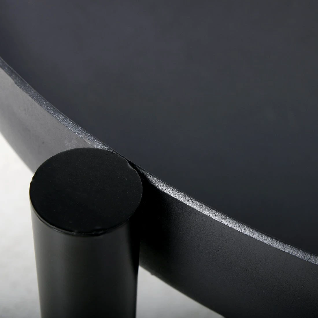Etwas. Die schwarze Feuerschale hat einen Durchmesser von 60 cm und eine Höhe