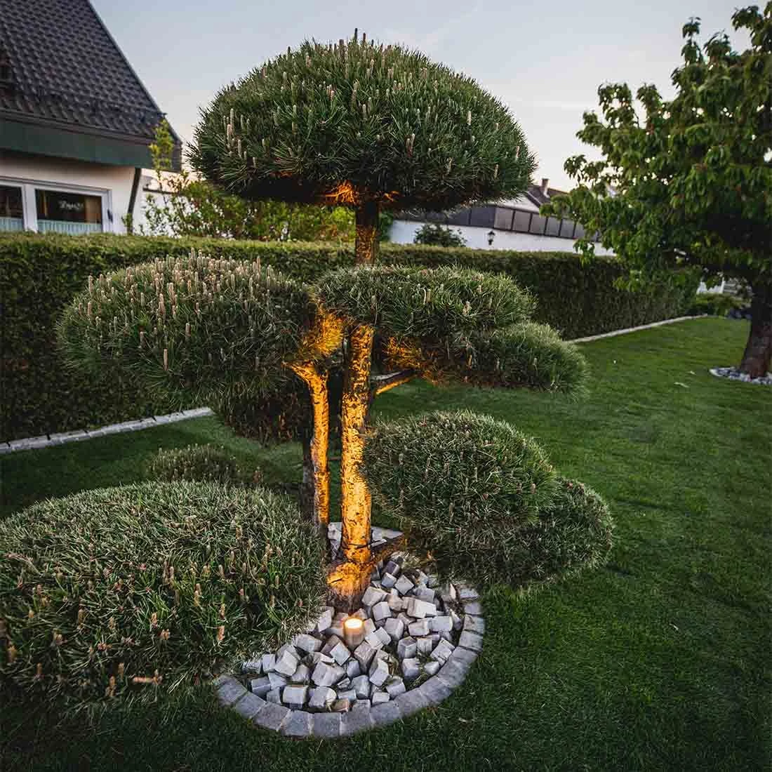 Mit diesen Lichtsystem können Sie eine wahre Lichtershow im Garten veranstalten. Durch die smarte Steuerung können die Leuchten in Farbe und Beleuchtungsmodi, oder sogar mit Sound individuell angepasst werden.