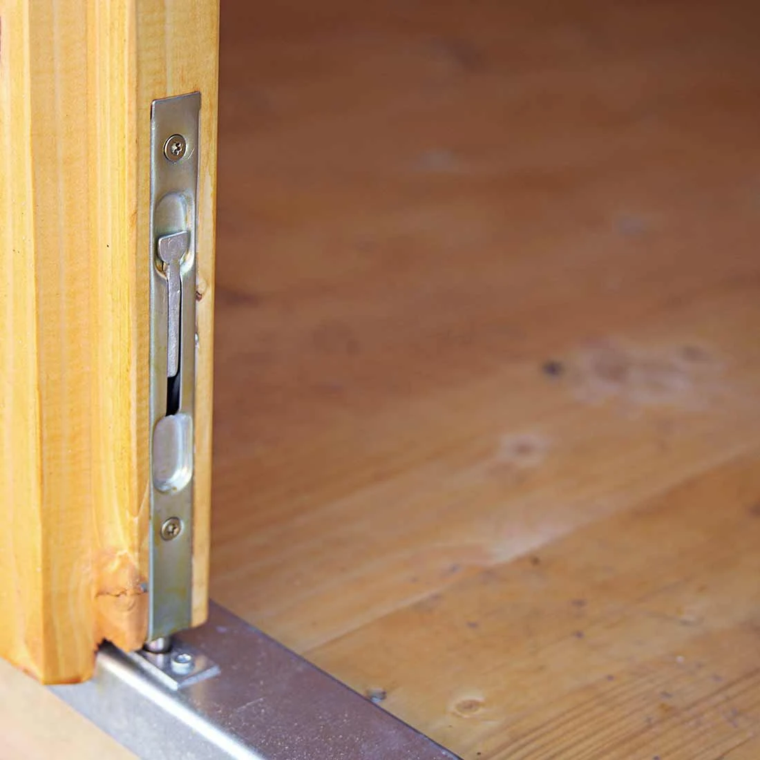 Weiterhin zeigt sich die hochwertige und optisch ansprechende Verarbeitung des Gartenhauses in der verglasten Leimholz-Doppeltür, die mit einer Drückergarnitur, einem Einsteckschloss und Profilzylinder ausgestattet ist. Durch die Verwendung von echtem Glas wird ein vorzeitiges Verkratzen verhindert und das Gartenhaus behält seine edle Optik.